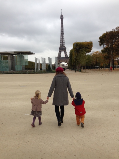 Sunday morning walkDaylight Saving Time happened early Sunday morning. This means our kids woke up between 5 and 5:30 A.M. instead of the comfortable 6:30 A.M. we had just gotten used to. That’s early, people! You can’t exactly reason with a four-month old and tell her she shouldn’t be awake, nor is it a good idea to put her back in the bedroom she shares with her old brother and sister. Eventually, we embraced the earlier hour and made a little side trip to the Eiffel Tower while on our way to church.