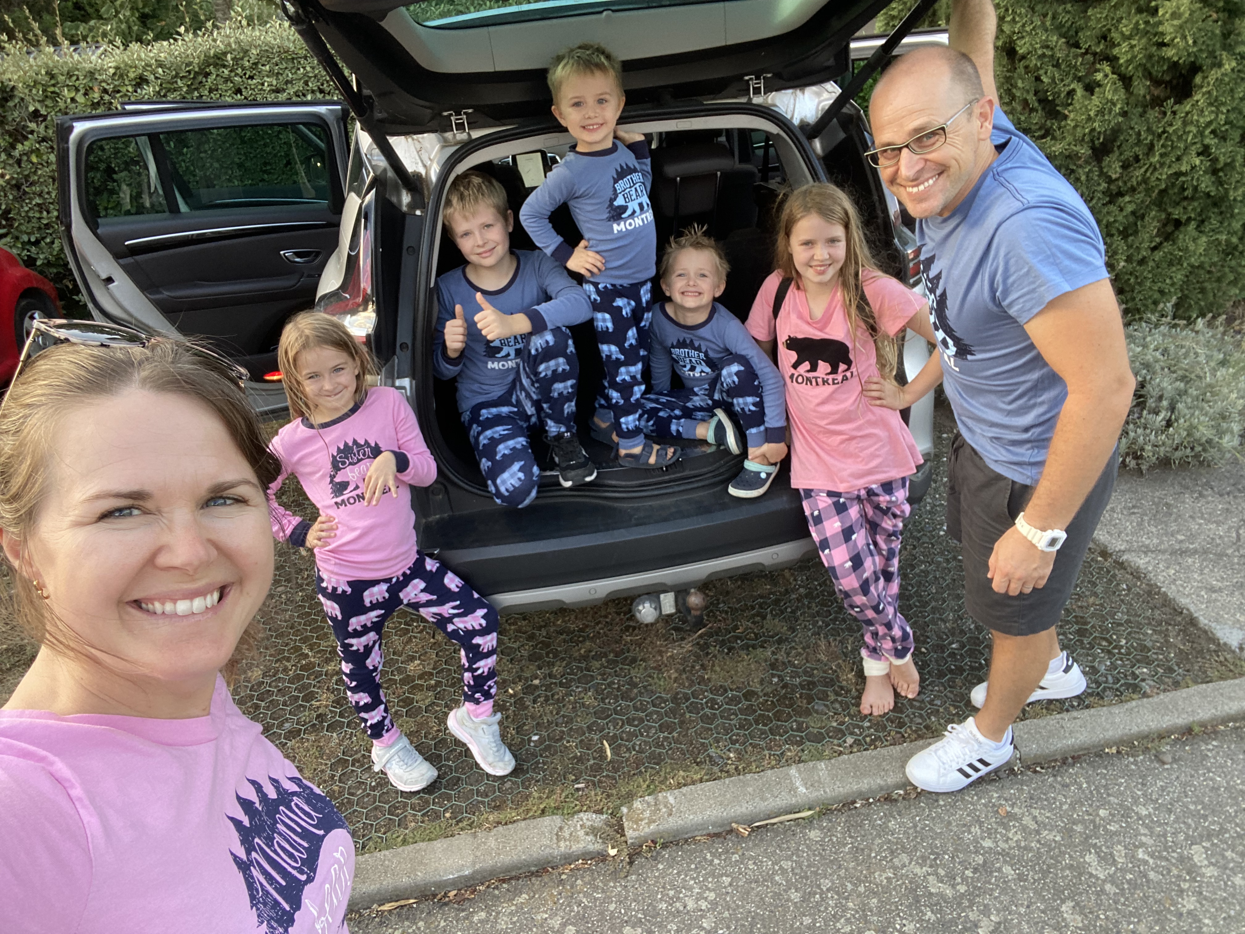 The memory of our first outing in our car is also a highlight from those first weeks here. A week after arriving in France, Dave took a train to a near by city and purchased our van. The kids and I rushed through dinner and baths so we would be ready to cruise when Dave arrived back home. The kids put on their Canadian jammies (that we bought in the Montreal airport during our 30 hour layover), we loaded 2 carseats and booster and headed for the center of Toulouse. I’m sure we were blasting some family favs like Friday Night by Eric Paslay, as we passed my old apartments and campuses I’d spent so many hours on. But then we hit Place Saint Pierre… full of young people, the bridge transformed into a walking bridge for the summer months and the warm sun still high in the sky at 7pm. We drove along the river and over Pont Neuf… all the while I had tears in my eyes, thanking God for the five years I had spent in Toulouse (2003-2008) and the joy of being back with my family.